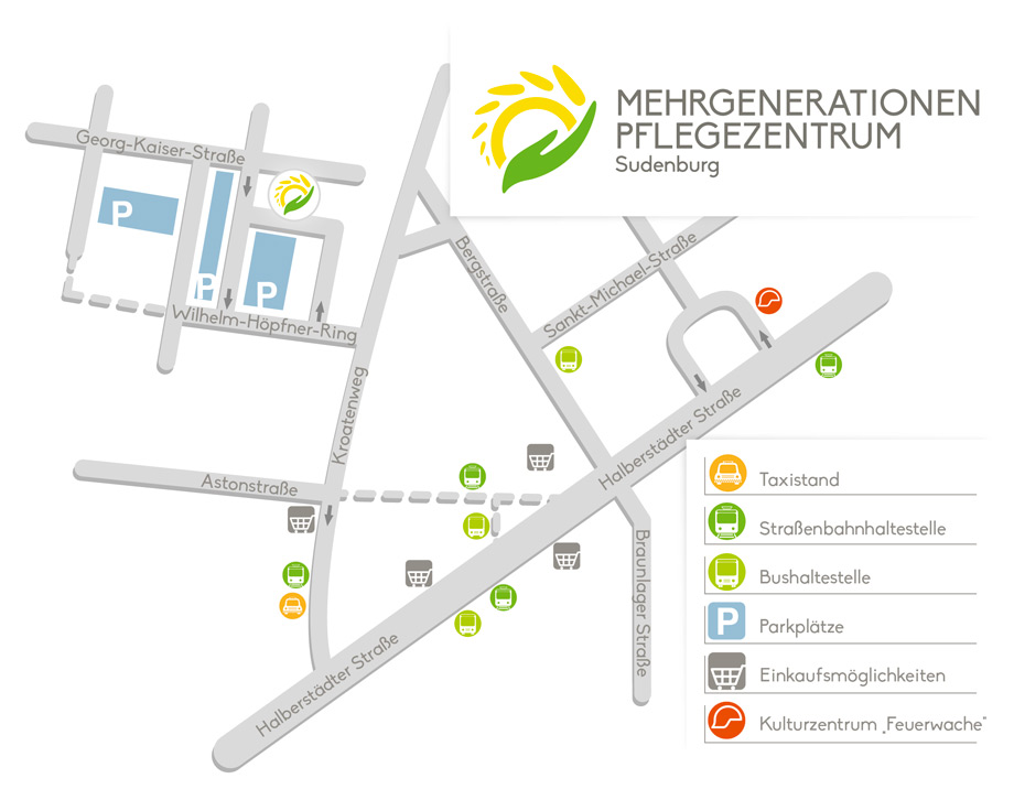 In ruhiger Lage innerhalb eines Wohngebietes, bietet der exzellente Anschluss an den öffentlichen Personennahverkehr beste Voraussetzungen für eigene Aktivitäten und eine aktive Teilnahme am kulturellen Leben im nahe gelegenen Sudenburger Stadtzentrum auf der Halberstädter Straße.